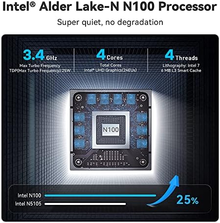 Experience the speed you deserve with the Beelink MINI S12 mini PC. Powered by the advanced 12th Generation Quad-Core N95 processor, it outperforms older models like the 10th Generation J4125. With a sleek 10nm lithography process and a base frequency reaching 3.4GHz, coupled with a 6MB smart cache, enjoy seamless streaming, smooth home entertainment, and efficient light office tasks. Say goodbye to frustrating system stalls and buffering.